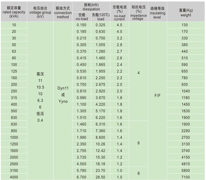 產品特點:高壓繞組采用聚脂漆包銅線繞制,用玻璃纖維填充,在真空狀態下用環氧樹脂澆注,高溫固化后形成堅固的整體,機械強度好,局部放電小;低壓繞組采用整張銅箔繞制,安匝分布平衡,抗短路能力強;鐵芯采用冷軋取向硅鋼片制作,合理選取磁密,有效降低空載損耗