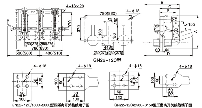 GN22-12(C)大電流戶內高壓隔離開關,適用于額定電壓10KV,三相交流50HZ,電力系統中高壓開關設備作為有電壓無負載的情況下分合電路之用。開關結構設計新穎、合理、獨具一格。它采用了兩步動作的鎖緊方式,使開關動熱穩定性能優異,操作力小。它采用了環氧樹脂和絕緣子及刷鍍銀等新材料新工藝,使開關導電性能好,體積小,質量輕。它的出線端子便于與真空斷路器、油斷路器連接,可縮小開關柜體積,減少過渡接頭,降低成本。