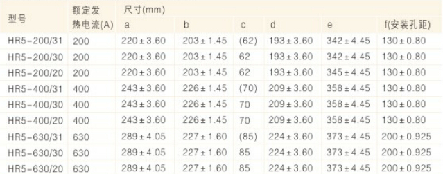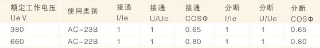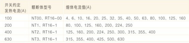 注:當開關用于發動機電器中,允許熔體額定電流大于開關約定發熱電流。