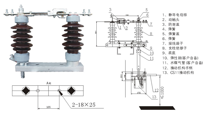 1)全部采用熱鍍鋅工藝防腐處理,熱鍍鋅不能保證配合要求轉(zhuǎn)動的部位一般均采用不銹鋼材料,緊固件M8以下采用不銹鋼,其余均采用熱鍍鋅。 2)導(dǎo)電部分銅管軟連接型,中間觸頭為 “握手” 式自力型觸指,彈簧外壓式無電流通過,隔離開關(guān)只有中間一個接觸點,其余均用軟連接固定聯(lián)接。 a.采用新的觸頭結(jié)構(gòu),將觸片一端與觸座固定,靠觸片變形及彈簧產(chǎn)生接觸壓力,使觸指末端的滑動接觸改為固定接觸,提高導(dǎo)電可靠性; b.觸指彈簧改為外置式,以避免彈簧分流; c.現(xiàn)場用戶無需焊接,無需被輔助材料,只提供安裝支架(訂貨時注明是否帶支架及高度) 3)轉(zhuǎn)動部分配有自潤滑套,無需潤滑脂 4)主接線端子為平板型。 5)開關(guān)用支柱絕緣子強度密度大,穩(wěn)定可靠,配方采用高強度瓷料制造,減少了產(chǎn)品強度的分散性,增加了產(chǎn)品的抗拉強度,結(jié)構(gòu)設(shè)計時已對產(chǎn)品已有較大的強度預(yù)留度,使產(chǎn)品在運行中保證穩(wěn)定可靠。 |