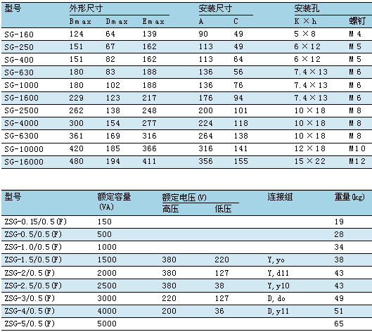 SG系列三相干式變壓器,適用于電子工業或工礦企業,作機械設備中一般 電器的照明、動力控制電源之用。ZSG系列三相干式整流變壓器供整流設備、充電、電壓及直流電源之用。 |