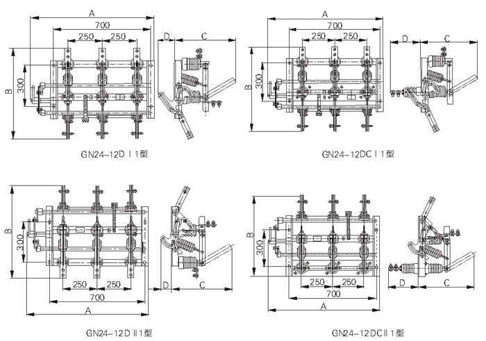 GN24-12D(Ⅰ、Ⅱ),GN24-12D(Ⅰ、Ⅱ)C系列戶內(nèi)高壓隔離開關(guān)為額定電壓10kV,三相交流50Hz的戶內(nèi)裝置。 |